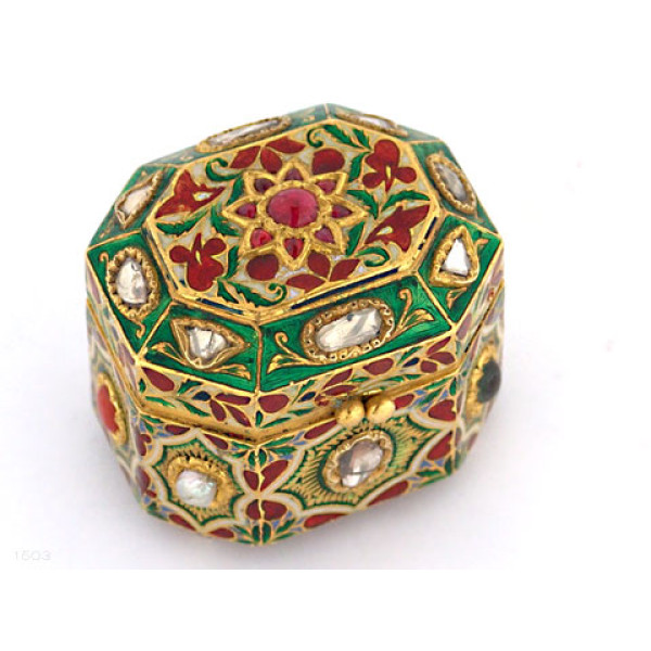 Συλλεκτικό κουτί χρυσό Κ22 του 1900, Pill Box, με 1 Ζαφείρι 0.50ct, 1 Σμαράγδι 0.40ct, Cat eye, Kοράλι, Pearl, Τοπάζι, 9 Διαμάντια 1.50ct και Τουρμαλίνες και Σμαλτοχρώματα