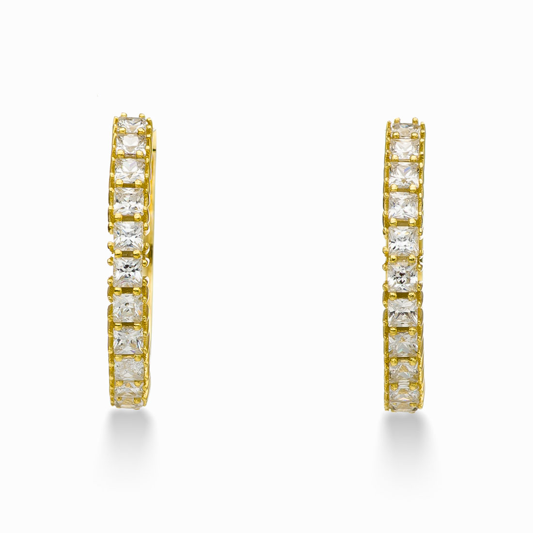 Σκουλαρίκια Κρίκοι απο Ασήμι 925, Gold Plated K18 και λευκά CZ. 3.50γρ